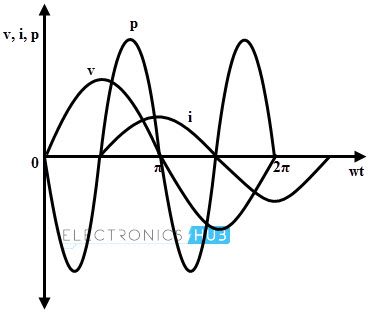 P = Vm sin ωt × Im sin (ωt – 90)