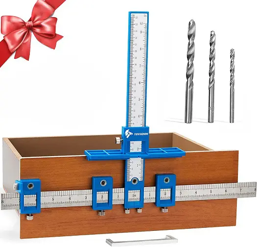This cabinet simplifies installing cabinet hardware, especially for kitchen drawers, knobs, and handles. It’s essential for both professionals and beginners. And as a bonus, it comes with two drill bits, saving you the trouble and cost of buying them separately.
