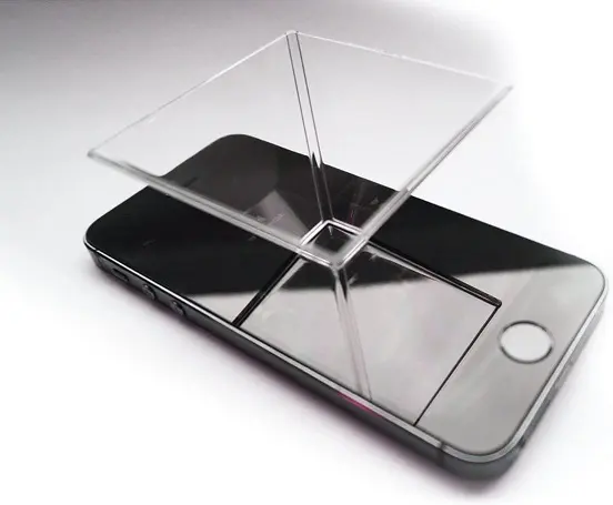 Spectre Hologram Projector is an innovation for the word “hologram projector”. The projector is developed by keeping the viewing angles of a human eye. The end product is a prism that indeed works as a projector. The four-face prism design helps convert a normal display screen into a projector. The image is mirrored from the screen onto the four prism faces. The angular tilt to the faces makes the perfect reproduction of the image frames, which appears 3D to the eye.