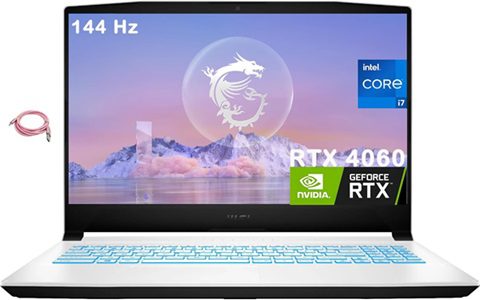 The MSI Newest Sword Gaming Laptop is a strong computer made for playing games well. It has a smart Intel Core i7 brain and a powerful NVIDIA GeForce RTX graphics helper for good graphics. This makes games look smooth on its 15.6″ screen. With a fast SSD and lots of RAM, it’s good for both work and play, letting you use apps quickly. It connects easily to the internet and other devices. The laptop looks cool in white and is tough. The small charger is easy to carry, and it has different ports for connecting things.