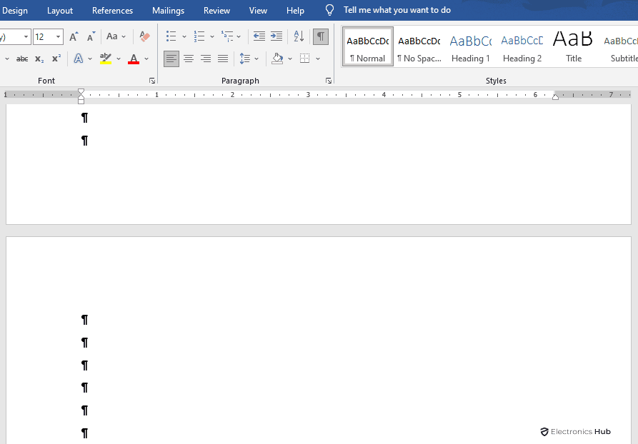 - In the Paragraph group, click the “Show/Hide button”.