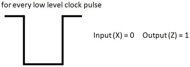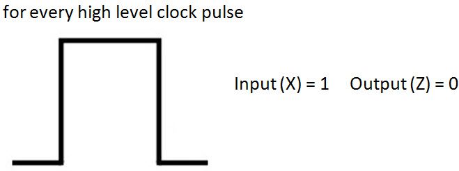 If we observe the above diagram, we can observe how the input will invert for every HIGH and LOW pulses of a clock cycle.