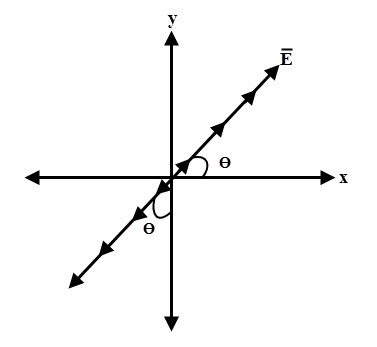 Suppose E ̅ has both E ̅x and E ̅y components which are in phase having different magnitudes. The magnitudes of E ̅x and E ̅y reach their maximum and minimum values simultaneously as E ̅x and E ̅y are in phase. So at any point on the positive z axis, the ratio of magnitudes both the components is constant.