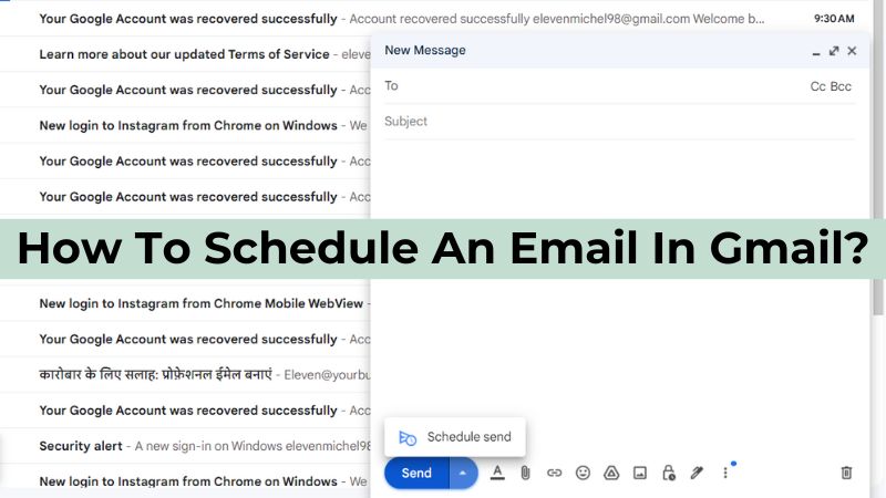 - To schedule your email, click on the dropdown menu next to the Send button and select Schedule send from the list of options.