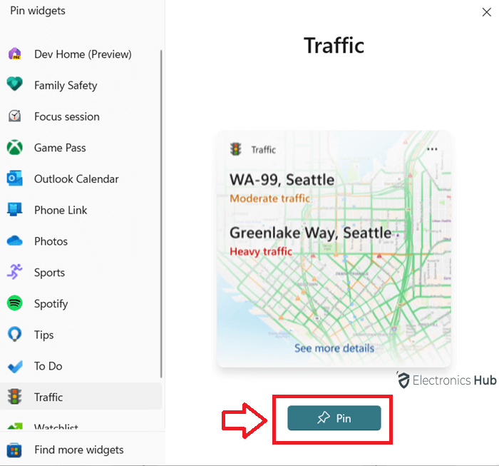 - Once the Widgets panel opens, you can access any built-in Widgets that are already installed by Windows OS, such as Weather, Traffic, Calender, etc. Along with that, you can add any other widgets by downloading them from Microsoft Store.