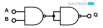 When both inputs are high, then the output of the NAND gate will be LOW and when either of the inputs is low, then the output goes to HIGH level. At the end of the clock pulses in the above, the output is at high level as one of the inputs is low.