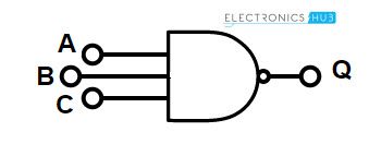 The Boolean expression for the 3-input NAND gate is Q = (A.B.C) ̅