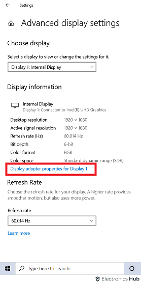 - In this section, you will find detailed information about your current primary display. You also get the option to change the refresh rate of your monitor. If you are using a gaming monitor, make sure that the refresh rate is set to the maximum value offered by your display.