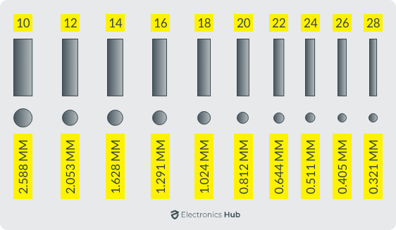In this article, we will understand an important specification of an electrical wire called its Gauge. The American Wire Gauge is one of the popular standards of wire sizes. We will learn the importance of the gauge of the with its current carrying capacity with the help of a Wire Gauge Chart. The wire gauge chart is also sometimes known as Wire Size Chart and it consists of important parameters of a wire such as its diameter in different measuring standards, maximum current, resistance and many other things.
